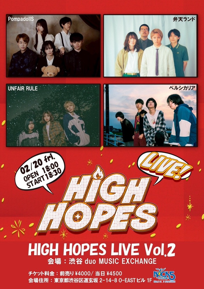 【2/20 ライブ】@渋谷duo MUSIC EXCHANGE「HIGH HOPES LIVE Vol.2」