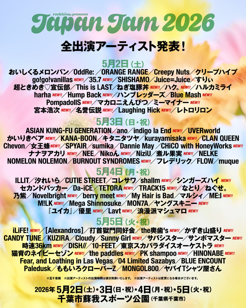 【5/2 フェス】JAPAN JAM 2026 @千葉市蘇我スポーツ公園